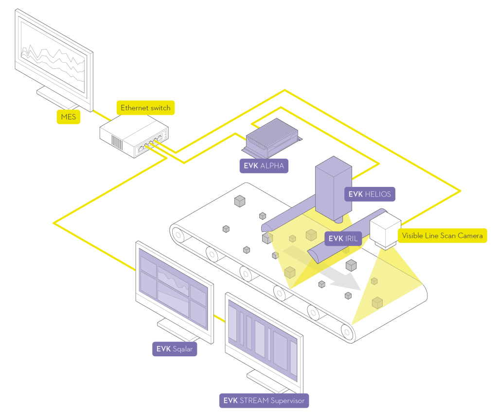 EVK ALPHA, an image processing platform for spectral data, combined with the EVK HELIOS EC is a powerful duo for in-line inspecting and monitoring in real-time.